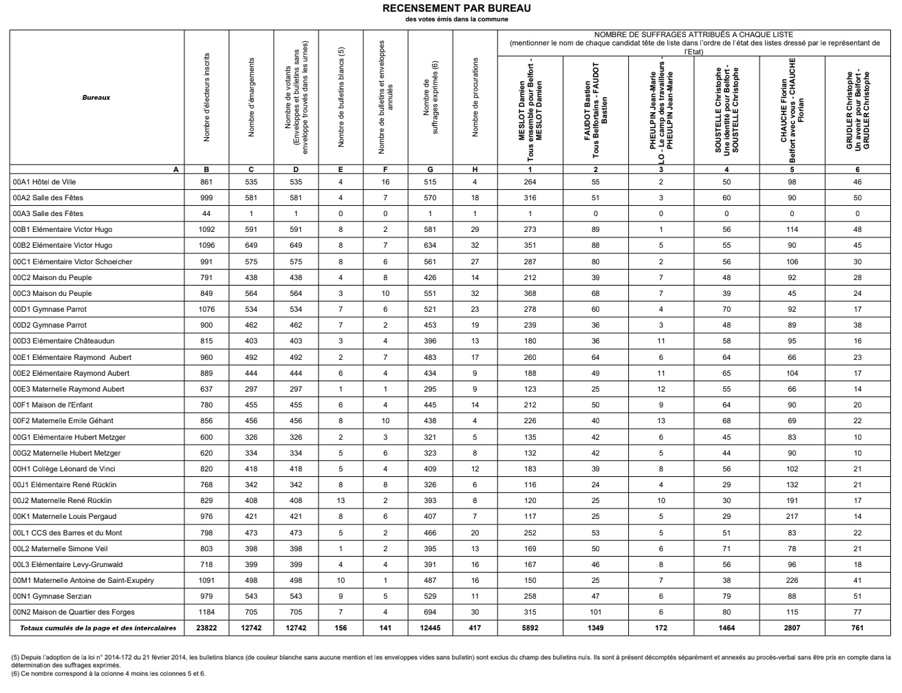 Résultats élections municipales 1er tour