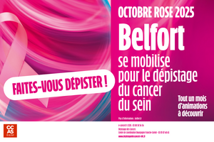 La Ville de Belfort, avec son Centre Communal d’Action Sociale (CCAS), se mobilisent tout au long du mois d’octobre rose pour la prévention et le dépistage du cancer du sein.
