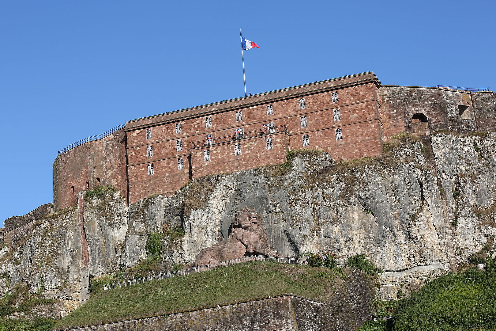 Fidèle à son poste depuis 1880, le Lion, fort et imposant, mais digne et bienveillant, veille sur sa ville depuis son promontoire rocheux. Réalisé en grès rose des Vosges, il mesure 22 m de long sur 11 m de haut. Il est le symbole de la résistance des Belfortains face à l'envahisseur.