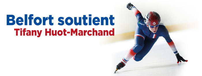 Tifany Huot-Marchand, patineuse de vitesse licenciée à Belfort, porte haut les couleurs de la France aux JO d'hiver en Corée du Sud ! La Ville de Belfort est fière de la soutenir.