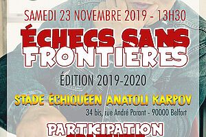 Échecs Sans Frontières est un tournoi d'Échecs organisé au Stade Échiquéen Anatoli Karpov, 34 bis Rue André Parant à Belfort, par Belfort-Échecs en partenariat avec L'Armée du Salut de Belfort. L'inscription est gratuite et le tournoi est ouvert à tous, peu importe le niveau. L'inscription peut se faire en ligne depuis notre site internet www.belfort-echecs.org ou par mail à technique1@belfort-echecs.fr ou par téléphone au 03 84 21 52 80.