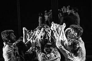 Sous D’autres Cieux. Quel plus beau titre pour nous parler de l’exil d’un homme mu par l’espérance, dont l’identité se trouble face au surgissement du souvenir et les vilains tours que lui joue sa mémoire ? Dans un décor magistral, paysage de grandeur et de désolation, fragments du poème, écriture originale et écriture scénique se mélangent. Comédiens, danseurs et performeurs entament alors une chorégraphie où les mouvements du corps deviennent plus éloquents que le langage, exprimant par le geste ce qu’il est impossible de dire par la parole.